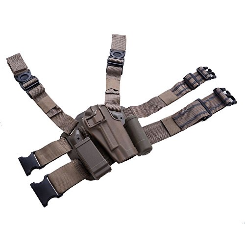 Features: 100% Brand new and high quality. This Holster fits Colt 1911. Accessory mounting locations for magazine and flashlight in 20-25.4mm diameter. Speed-cut design allows rapid draw, target acquisition, and re-holster while keeping eyes on target. Belt made of high quality thick nylon and holsters made of high density durable polymer. Flexible thigh platform conforms to leg size. Adjustable swivel buckle design for the flexibility of the length of belt, quick holster mounting and dismounting. Specifications: Compatible with Colt 1911 and Flashlight in 20-25.4 mm diameter Weight: 600g(21oz) Color: Dark Tan Retail Package Contents: Paddle Belt& Leg Hard Holster * 1